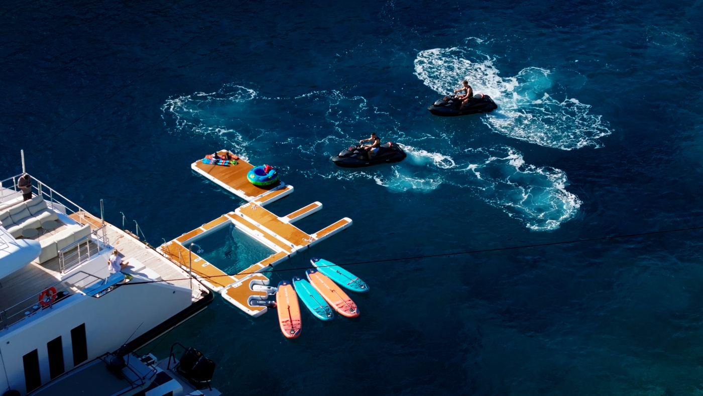 Meanwhile, on the lower deck, you'll find four double cabins and one twin cabin, each with an en-suite bathroom, ensuring every guest has a personal retreat. Tender & Toys