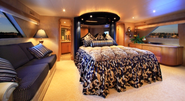 All other guest accommodations are below Amiship accessed through the staircase amidships to the lower foyer. Her elegant VIP stateroom located forward has a King bed.