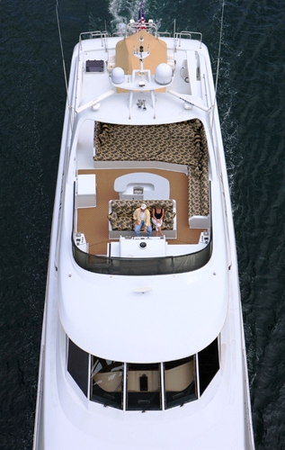 The elegant and sophisticated interior of the yacht was designed and built by Pacific Custom interiors with uncompromising craftsmanship.