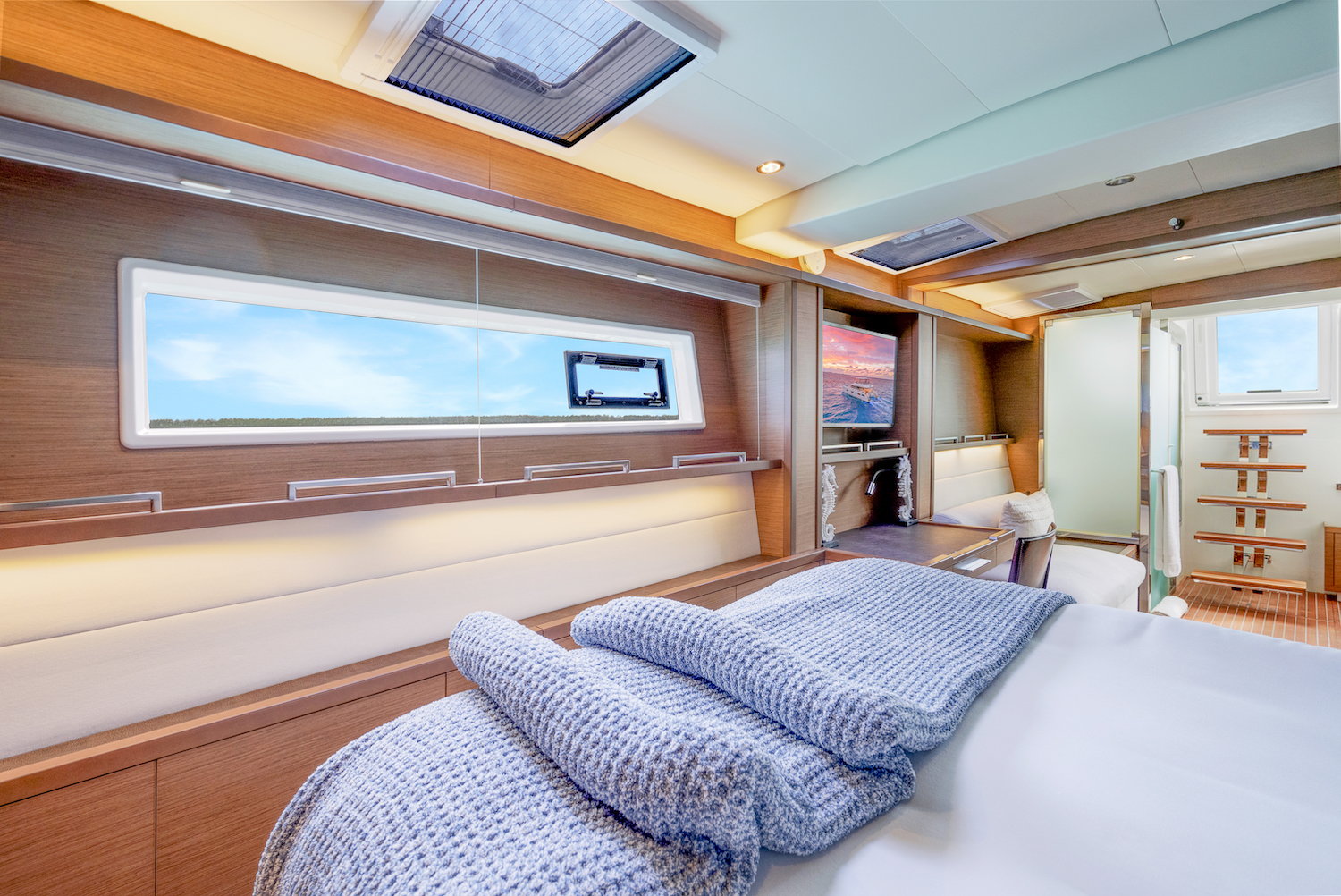 There are three guest ensuite guest cabins which echo the décor of the main deck areas. The master boasts a walk around bed, cosy seating area and deluxe ensuite with direct access onto the aft deck. The two additional double ...