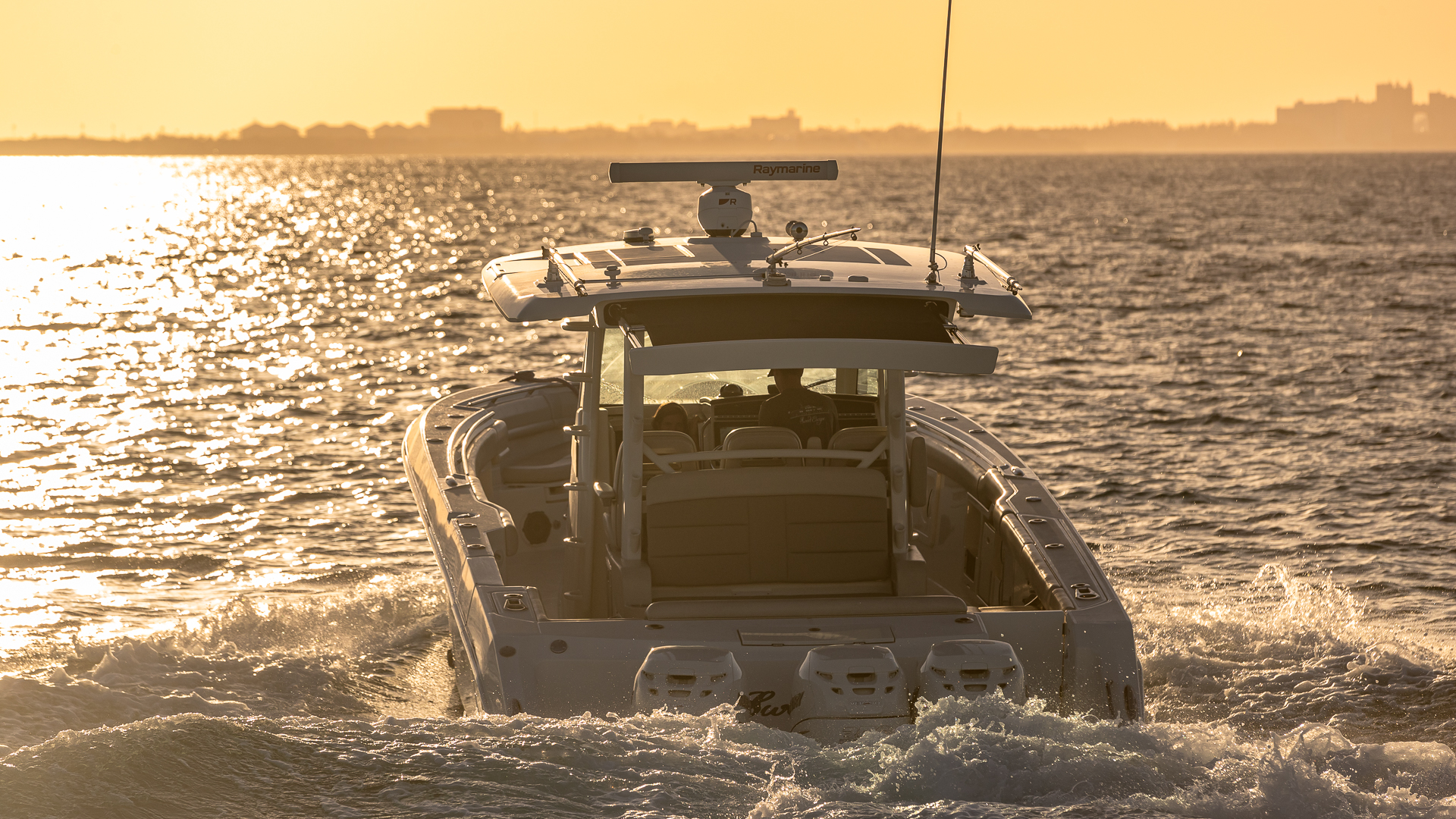 With twin C32 CAT engines SWEET ESCAPE reaches a top speed of 17 knots and cruises at 13 knots. MASTER STATEROOM: Below Decks, amidship.