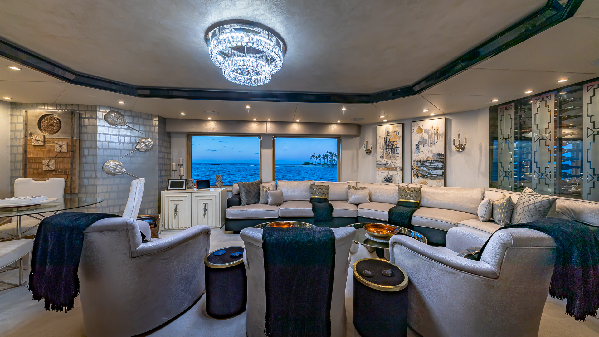 Her Main saloon has ample seating and offers rich fabrics and overstuffed furnishings creating a pleasant ambience of an elegant home that is well suited for any part of the world. A 55” flat screen TV and a BOSE lifestyle system are sure to keep guests entertained.