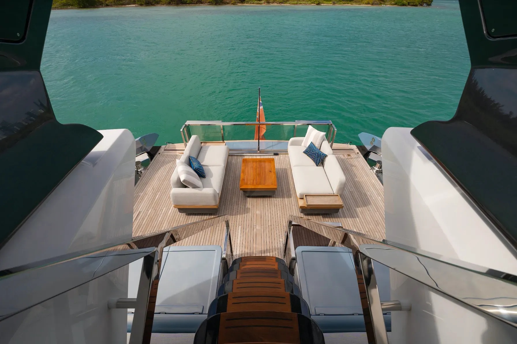 Motor yacht LATITUDE is a 28.65m (94') Azimut S10 launched in 2022 and configured with four cabins to accommodate up to eight guests. Her impressive top speed of 38 knots and ice blue hull will make her a standout choice for any group of charters. She travels with a three-person crew and a collection of fun water toys.
