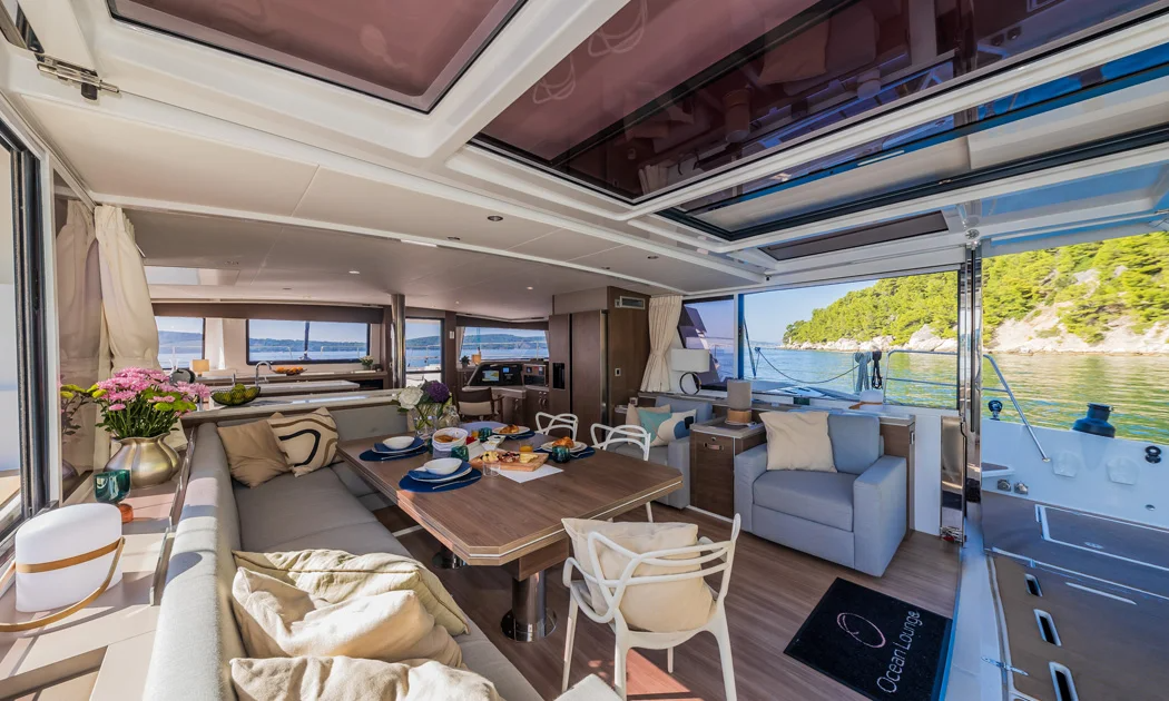 Living space on board flows seamlessly between the exterior and interior with the main deck cockpit leading directly into the main salon.