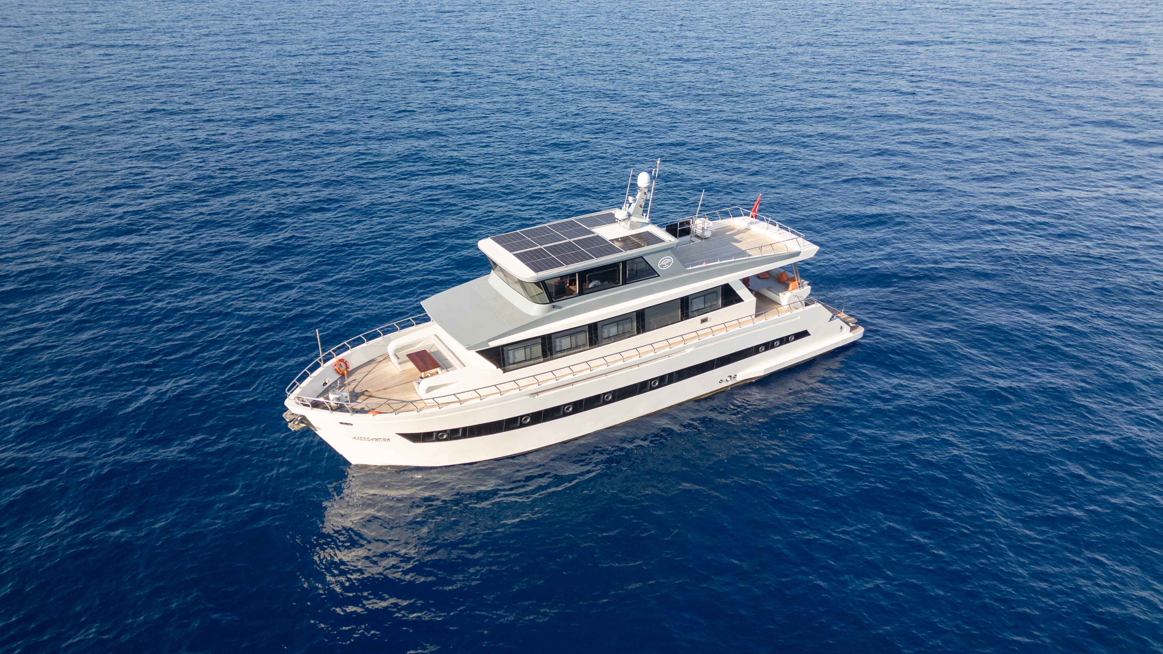 M/Y ALESSANDRO was custom built and launched in 2024, she measures 26m and can accommodate 8 charter guests in 4 spacious cabins. The yacht has 4 dedicated crew.