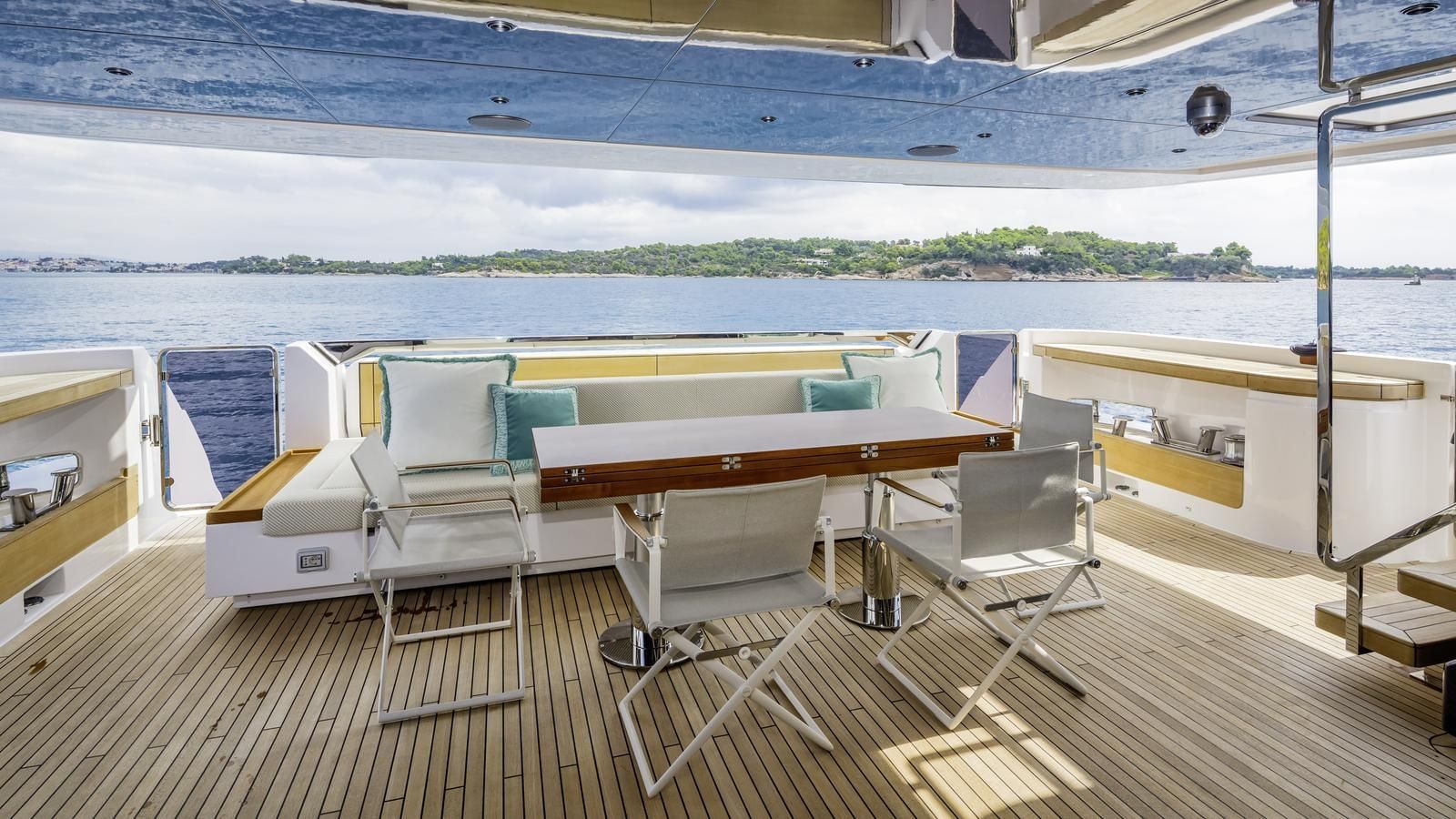 NOTABLE FEATURES OF QUANT: ~Sociable flybridge ~Expansive foredeck ~Full length windows in the main salon ~Main deck master with fold out balcony ~At anchor and underway stabilisers ~Air conditioning ~WiFi
