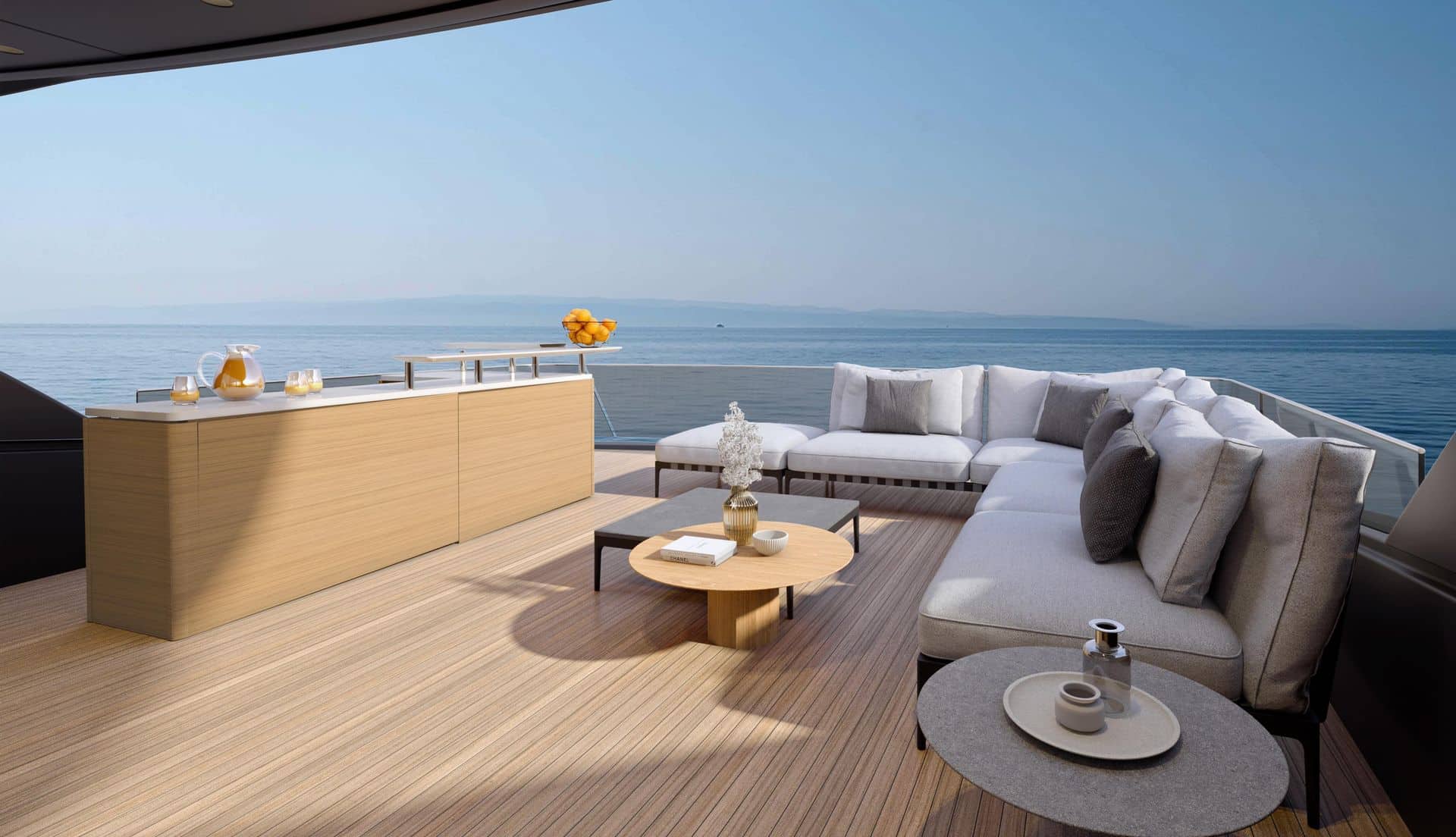 The crossover design blends explorer yacht spaces with a luxury charter yacht atmosphere.