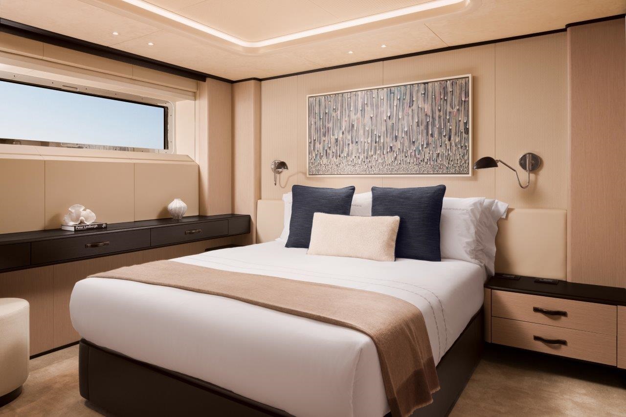 Her Oasis deck is an expansive beach terrace, unique to Benetti which includes a glass fronted pool. She can accommodate up to 10 guests in 5 suites with additional cabins for the 12 crew members.