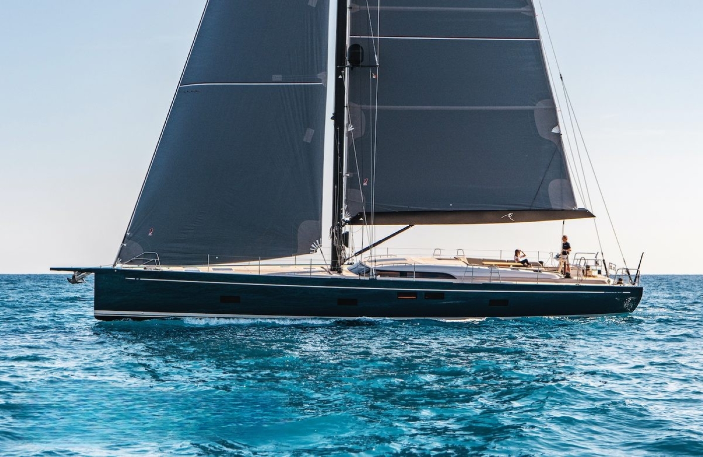 The main aft cockpit is beautifully presented with fitted sofas / day beds offering flexible seating which can be set up for al fresco dining or for leisurely days sunbathing - bimini and spray hood offer full sun protection. The dual helm is aft and central ladder steps lead down to the water’s edge.