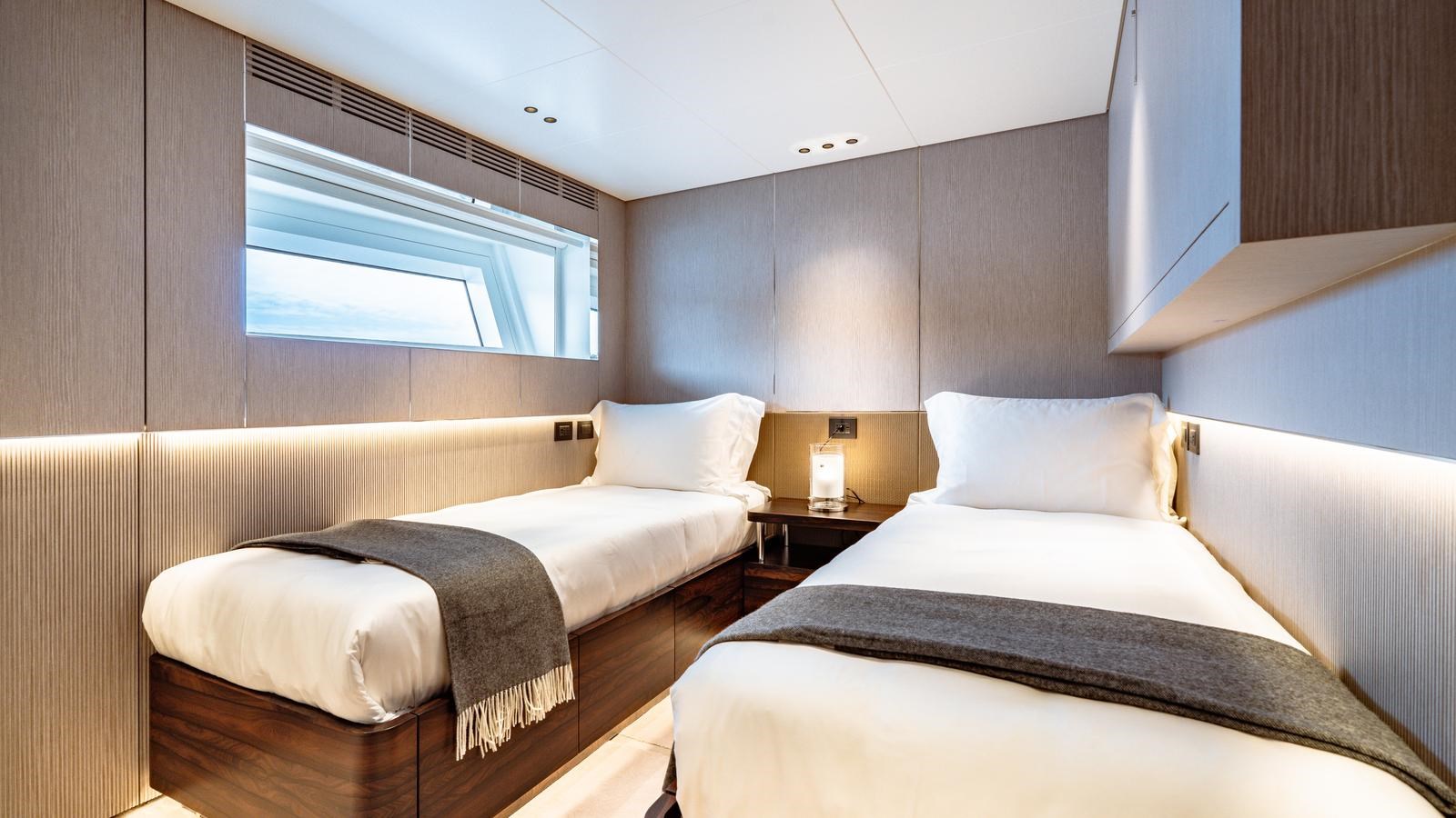 A five-suite layout can accommodate up to ten guests while additional cabins are home to the eight crew members.
