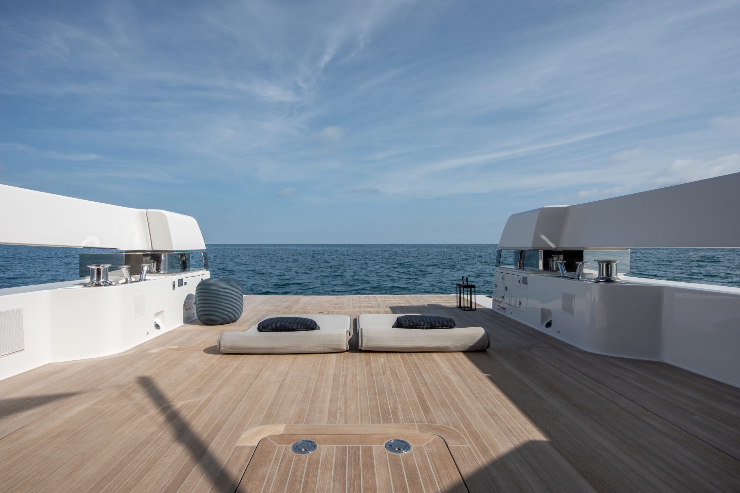 NOTABLE FEATURES OF BLUEGAME BG74: ~360-degree views from the cockpit ~Beach terrace ~At anchor and underway stabilisers ~Air conditioning ~WiFi
