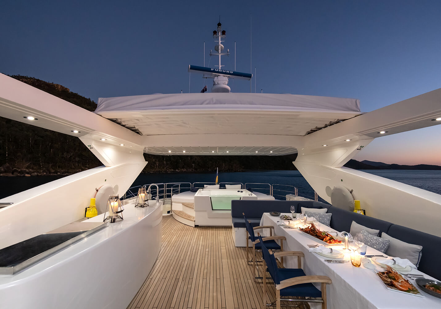 NOTABLE FEATURES OF GEORGE P: ~Eye-catching profile ~Deck jacuzzi ~Main deck master suite ~At anchor and underway stabilisers ~Loads of water toys ~Air conditioning ~WiFi
