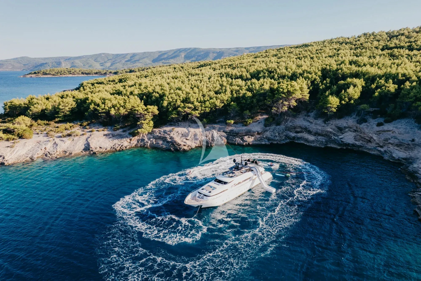 Motor yacht CYNTHIA is a 35.20m (115' 6") Maiora flybridge yacht built in 2010 and refitted in 2024. Her spacious decks and warm, welcoming interior create a truly luxurious charter vessel for up to eight guests who will be accommodated in four suites. Six crew members are on board offering professional service throughout the charter.