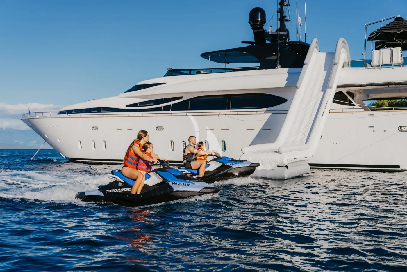NOTABLE FEATURES OF CYNTHIA: ~Choice of al fresco dining ~Warm and welcoming interior ~Superior tender and water toys ~At anchor and underway stabilisers ~Gym equipment ~Air conditioning ~WiFi