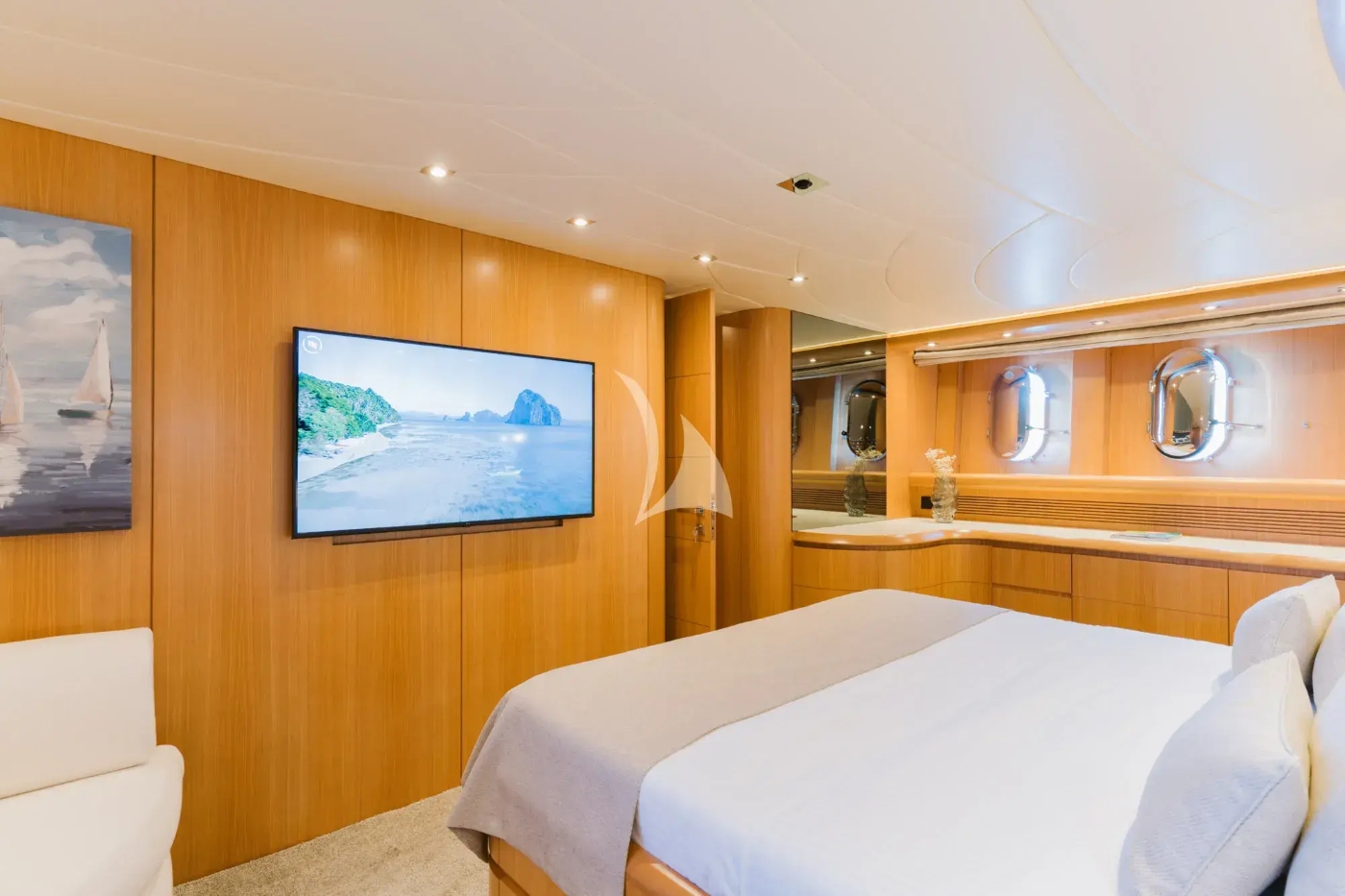 The guest accommodation is on the lower deck and configured as four double suites: two kings, one queen and one double, each with deluxe ensuite bathrooms with marble counter tops and separate shower cubicles.