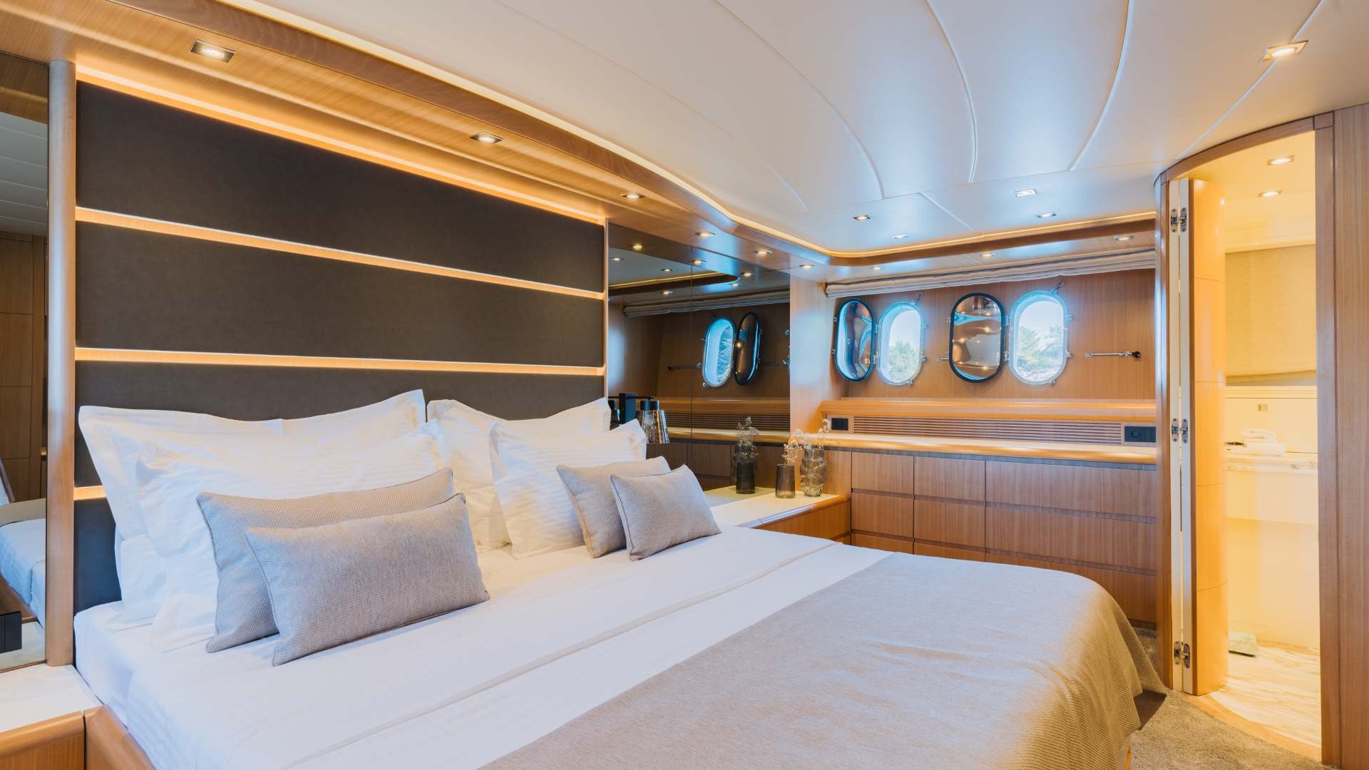 Motor yacht CYNTHIA is a 35.20m (115' 6") Maiora flybridge yacht built in 2010 and refitted in 2024. Her spacious decks and warm, welcoming interior create a truly luxurious charter vessel for up to eight guests who will be accommodated in four suites. Six crew members are on board offering professional service throughout the charter.
