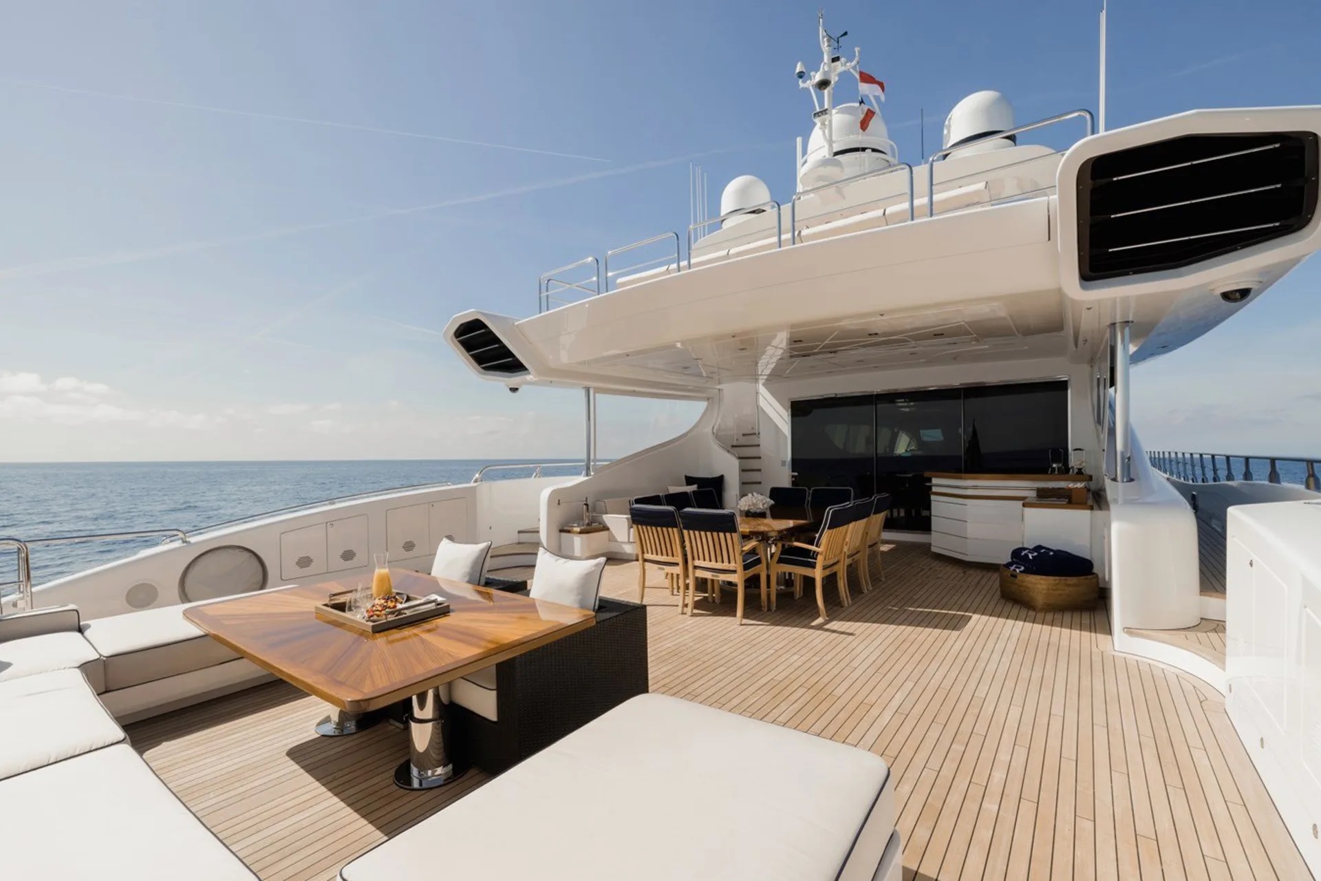 50M MANGUSTA SUPERYACHT – 49.90 m (163' 9") the 7th hull in the 165 series – has a sweeping profile, vast foredeck and open sun deck from a design by Stefano Righini. Her maximum speed of 38 knots will wow charter guests while her stabilisers ensure the ultimate in comfortable cruising.