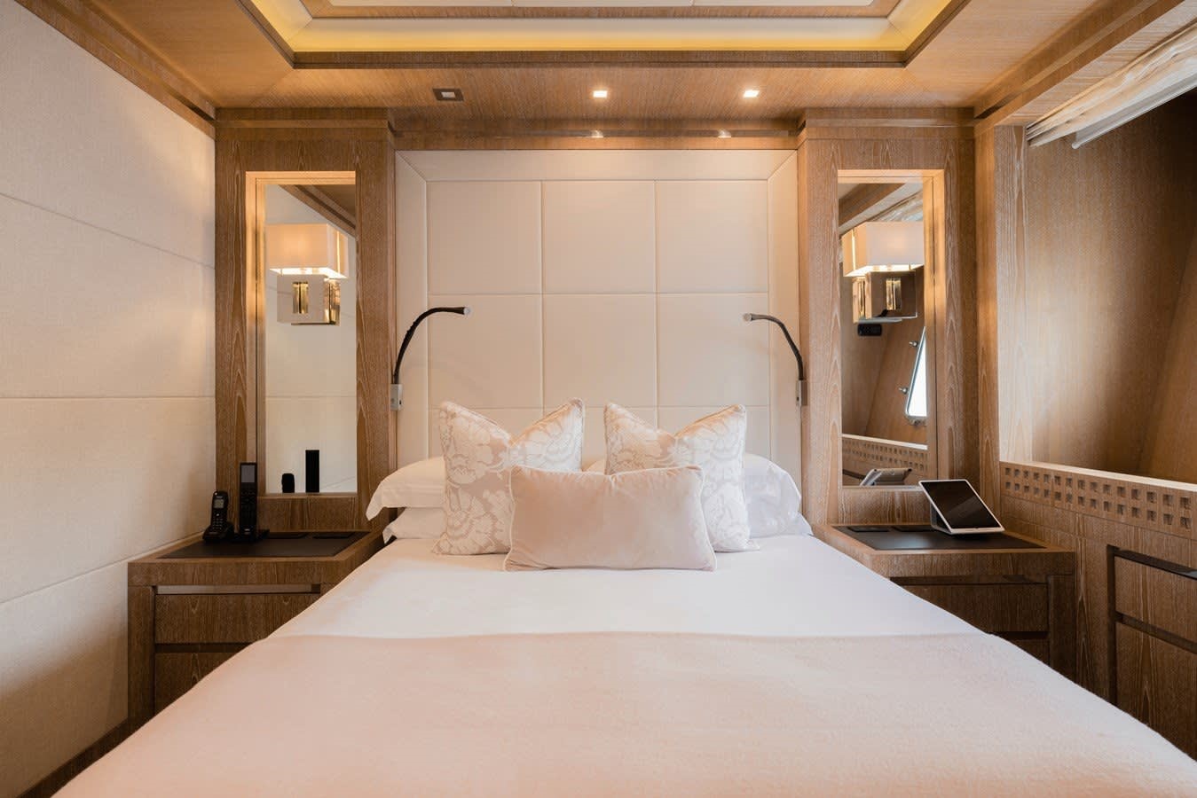 Ten guests can be accommodated in five suites with additional cabins for the nine crew members.
