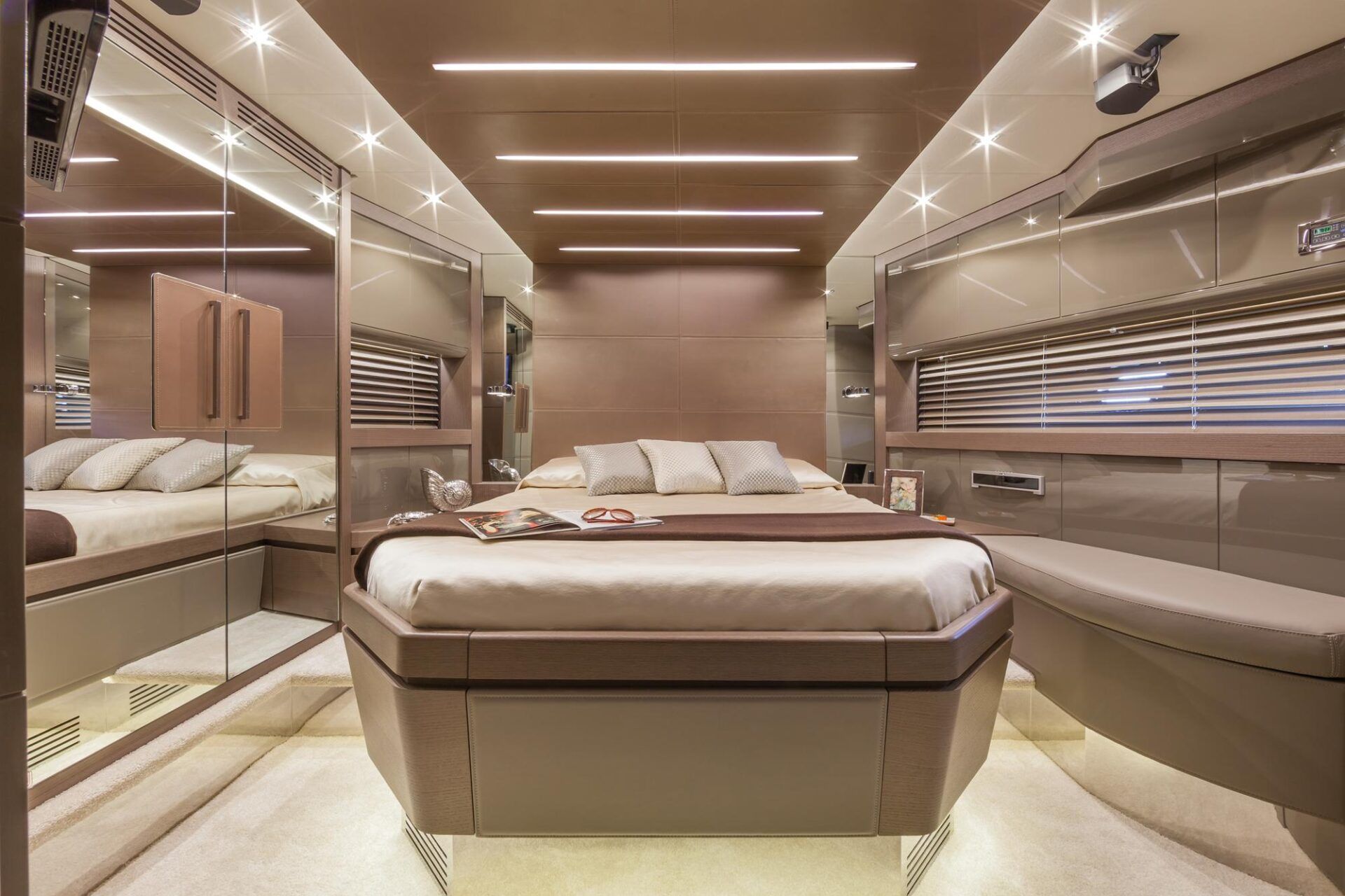 Accommodation is for up to six guests in a three-stateroom layout. The Master suite offers a queen-sized bed and ensuite facilities, the VIP is another queen-sized ensuite cabin while the twin can be convertible to a double and also offers ensuite bathroom facilities.