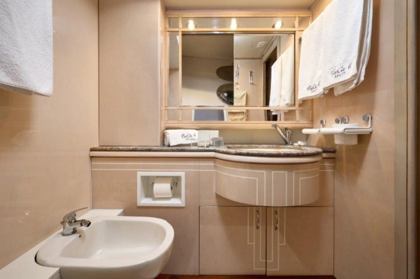 Two double and two twin cabins offer accommodation for up to eight guests with the master featuring a private seating area and all suites benefitting from the luxury and privacy of ensuite bathroom suites.