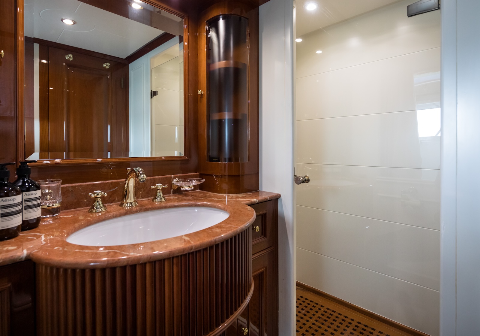 The lower deck hosts two VIP staterooms and two twin cabins (one with additional pullman bunk), all benefitting from the luxury and privacy of ensuite bathroom facilities. Tender and toys