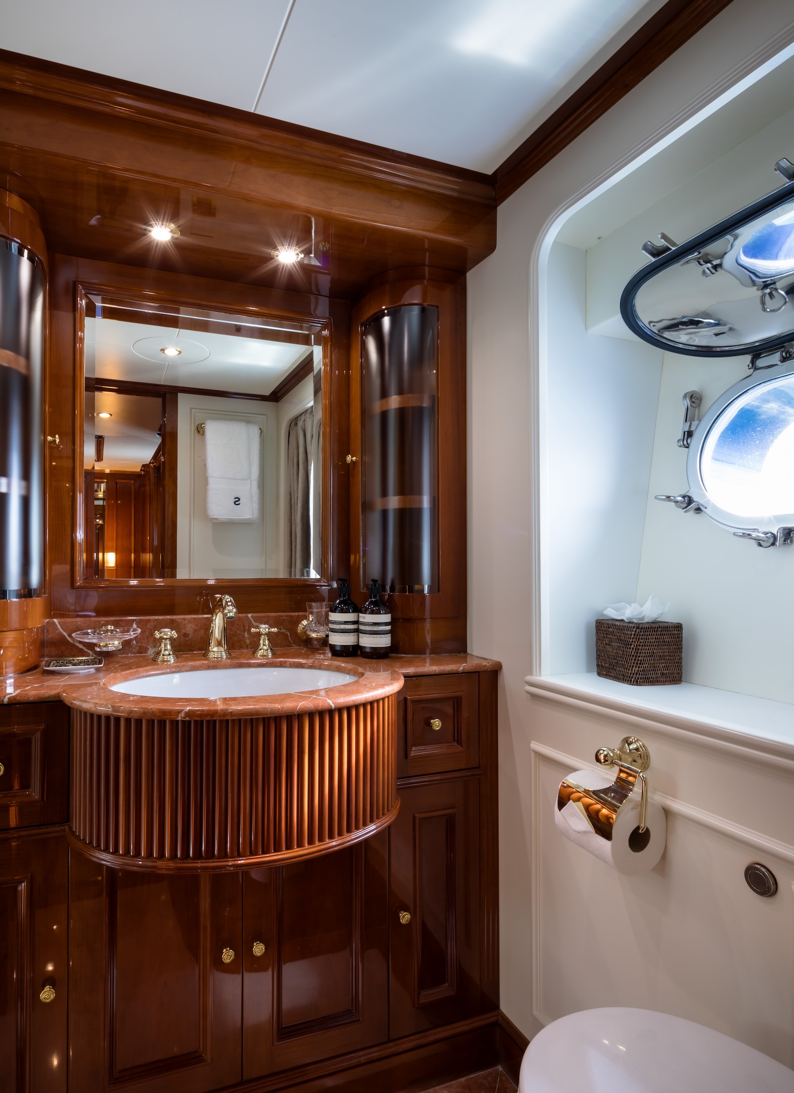 The lower deck hosts two VIP staterooms and two twin cabins (one with additional pullman bunk), all benefitting from the luxury and privacy of ensuite bathroom facilities. Tender and toys