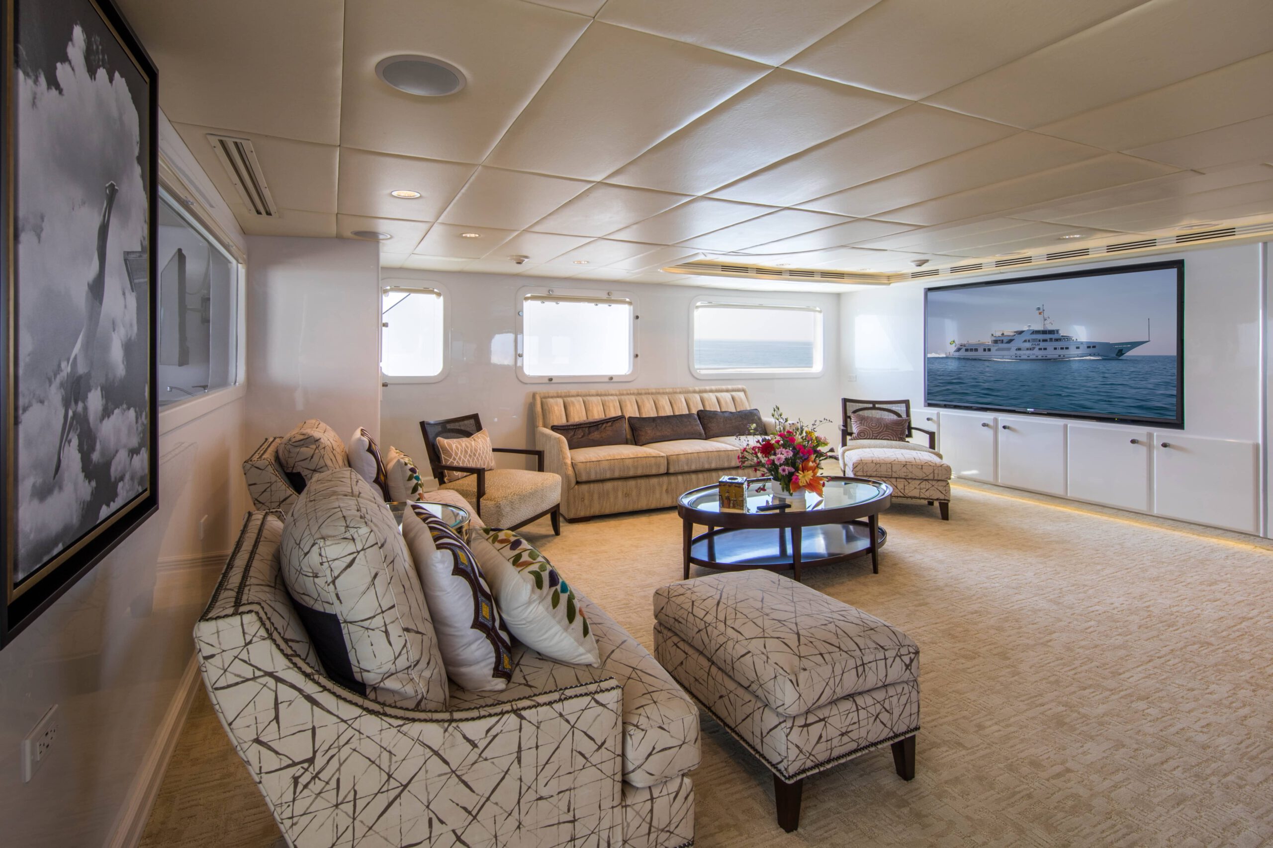 The fabulous sun deck is cleverly designed with an open aft area featuring a jacuzzi with sit up bar and an elegant lounge, and a semi-open zone with another sit up bar, seating and dining. The layout makes a flexible space perfect for family time or parties.