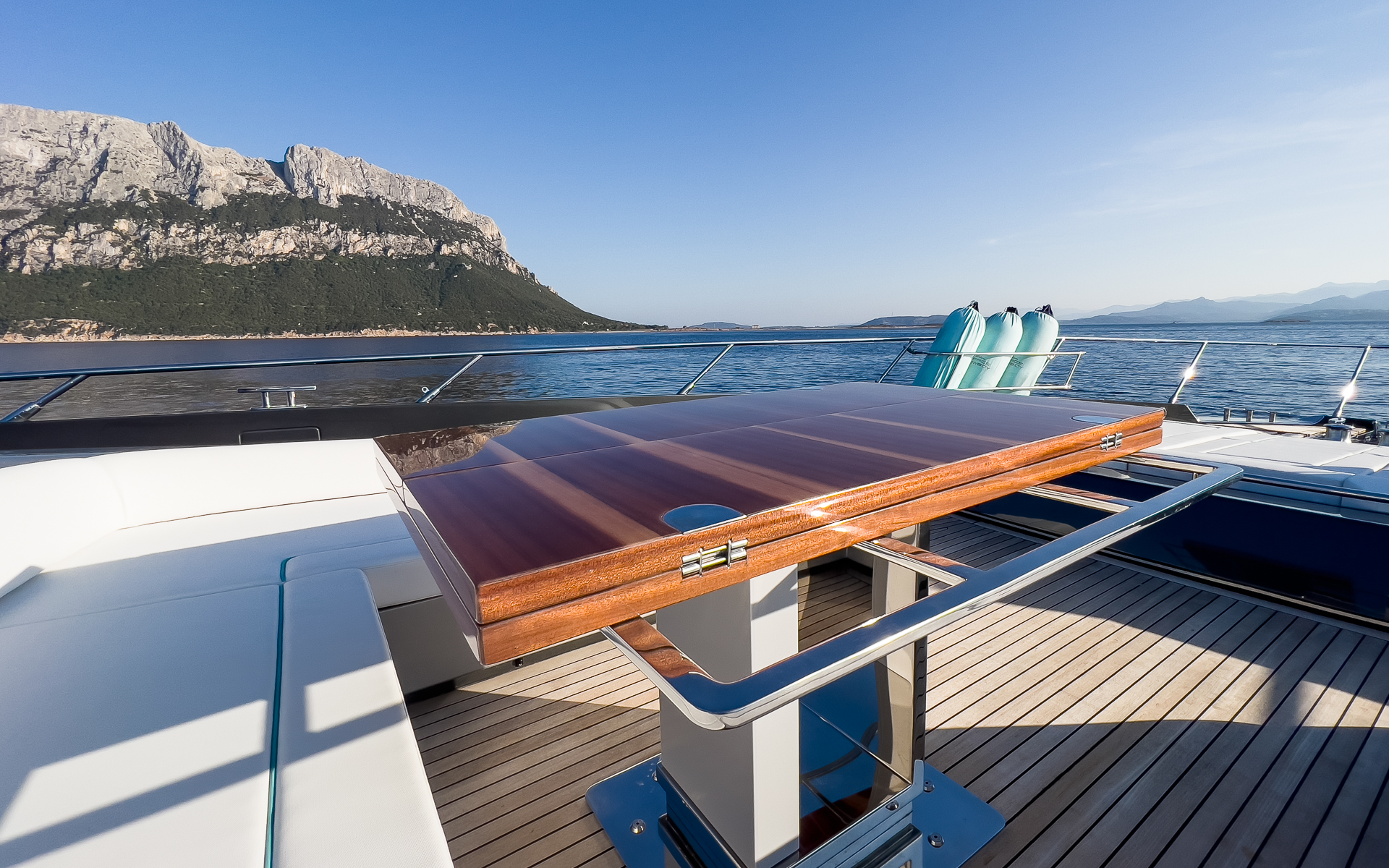 Sun canopies can be opened over the stern, flybridge and bow dining area making them adaptable for every weather.
