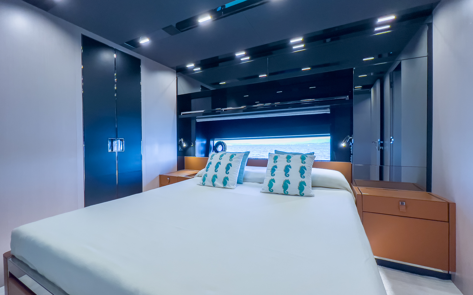 She can accommodate up to eight guests in four suites with an onboard crew of three.