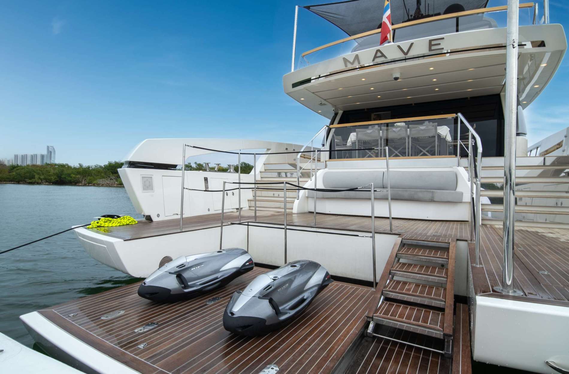 NOTABLE FEATURES OF MAVE: ~Designed to maximise al fresco lifestyle ~Light open plan interior ~Beach club with hydraulic platform ~Premium tender and loads of water toys ~At anchor and underway stabilisers ~Air conditioning ...