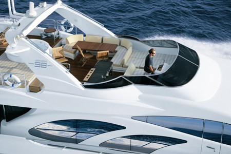NOTABLE FEATURES: Sleek and fast ~ part of a trio of yachts ~ Jacuzzi on Flybridge ~ ...