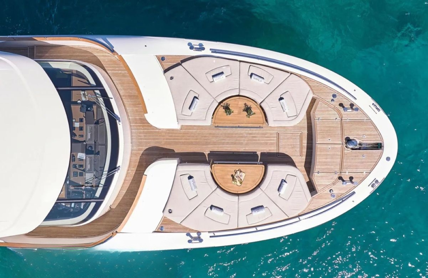 She offers a seamless blend of indoor and outdoor space, a uniquely designed foredeck lounge and accommodation for up to nine guests in four suites.