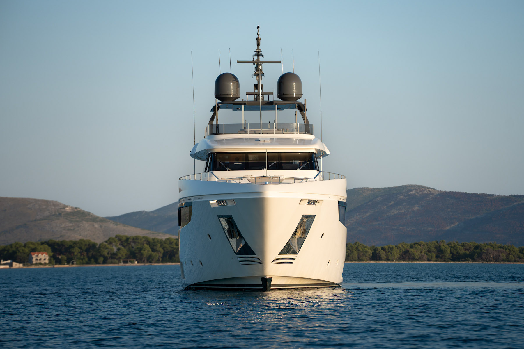 The bulbous bow assures stability and seaworthiness with an explorer yacht range of 2,000 nautical miles.