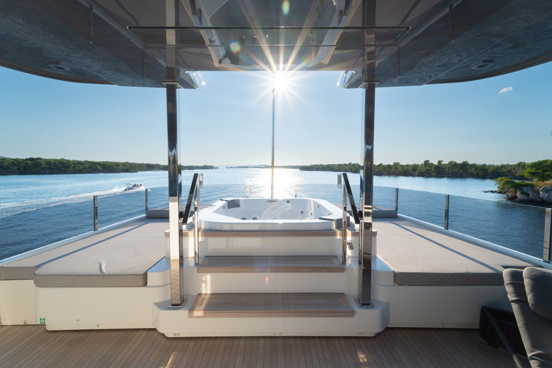 Superyacht SK is a 33.00 m (108' 3") Ferretti Custom Line Navetta 33 built in 2019 with accommodation for up to eleven guests in five suites. Characterised by Custom Line’s quality she boasts plenty of al fresco entertainment space and a clean contemporary interior.