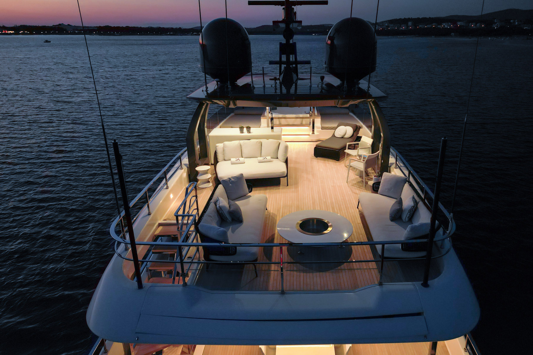 NOTABLE FEATURES OF SK: ~Tri-deck design ~Sun deck jacuzzi ~Open air cinema ~Stylish design in side and out ~Main deck master suite ~At anchor and underway stabilisers ~WiFi