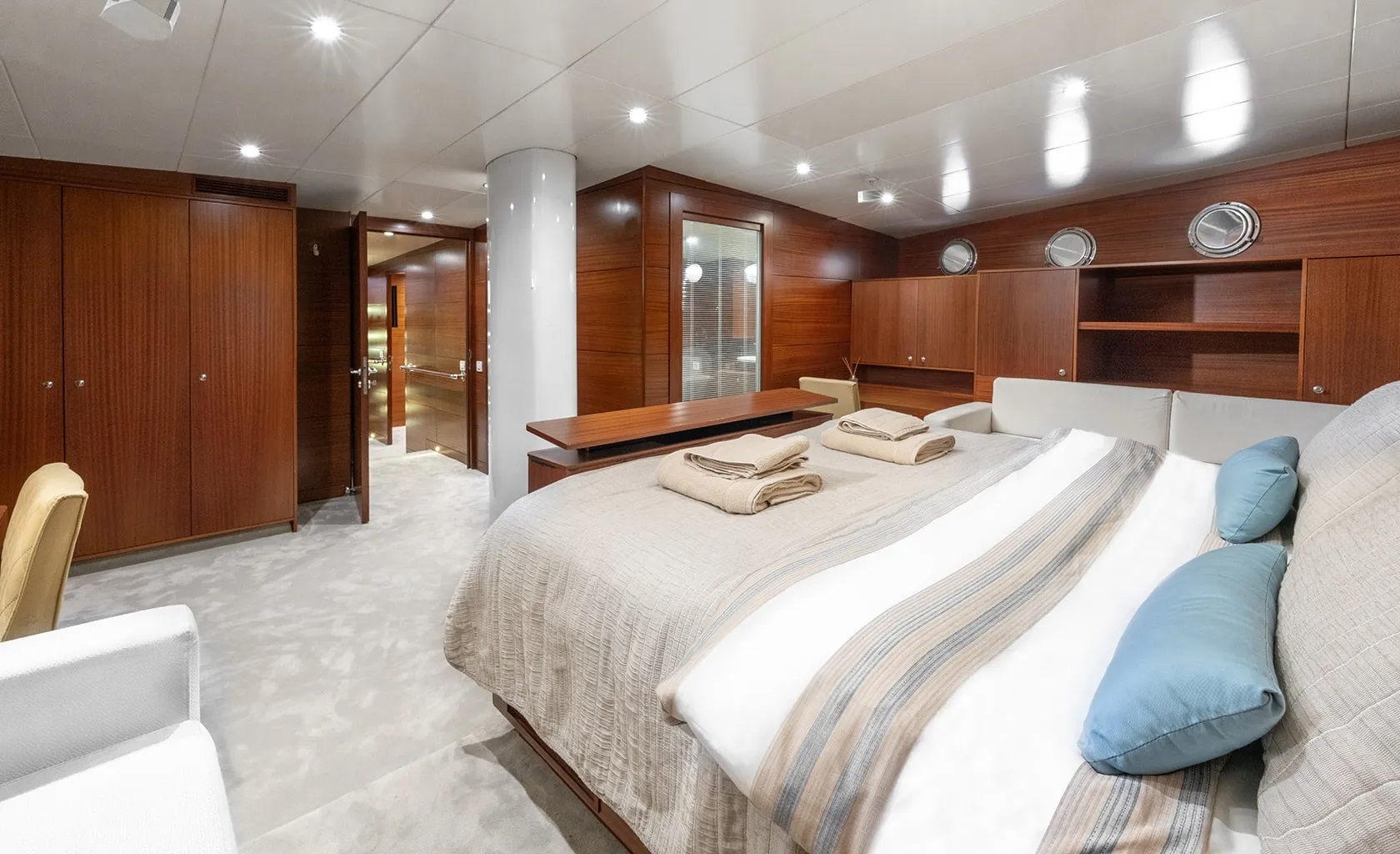 Up to twelve guests can be accommodated in five suites with additional accommodation for up to five crew.