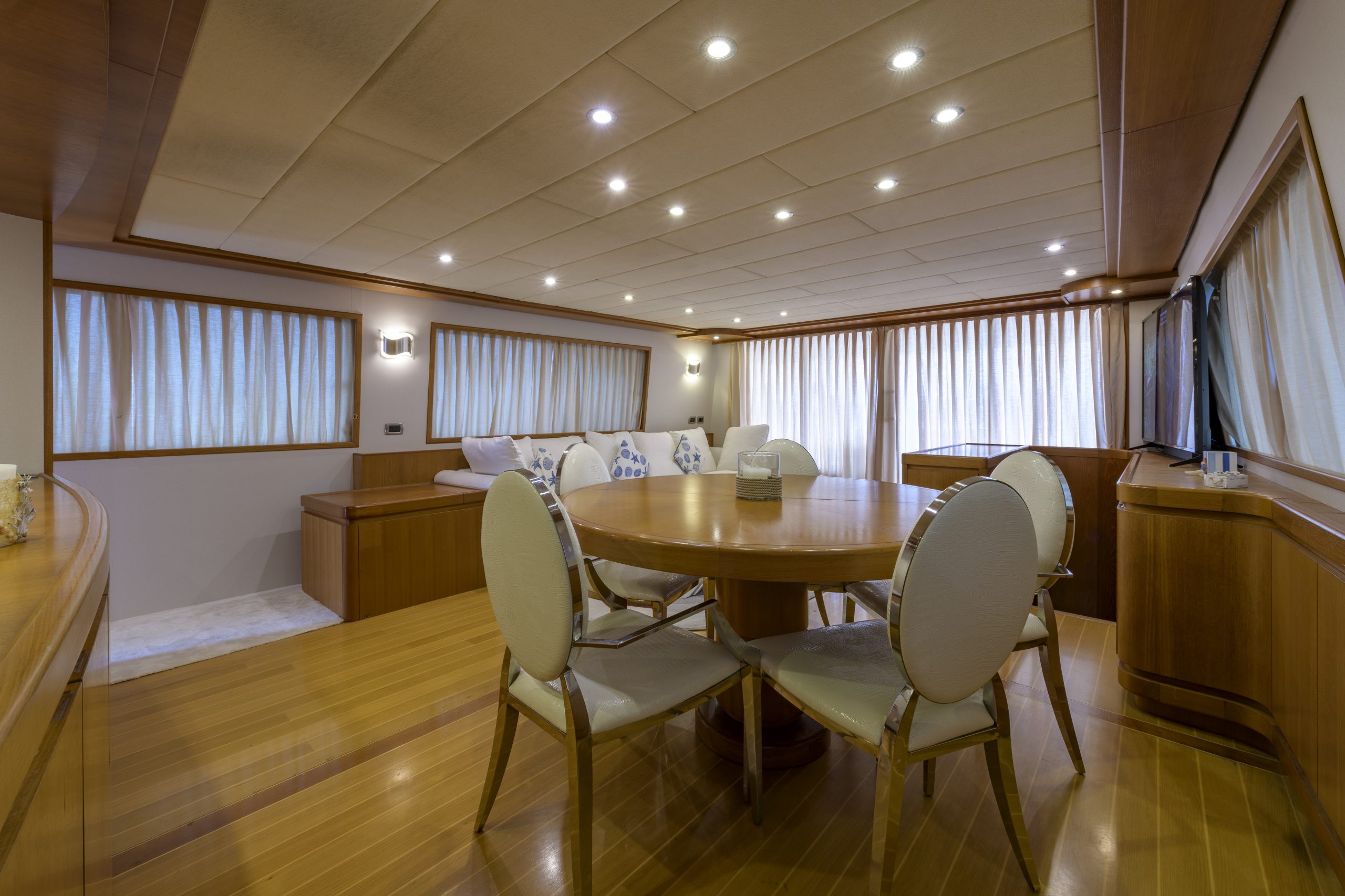 The main deck aft offers another al fresco dining setting from where guests have direct access into the main salon.