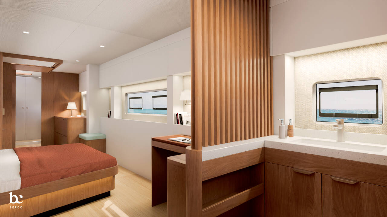 Bali sailing catamaran has a length of 17.65 m (57' 11") and was built in 2025 for up to eight guests in four suites. Spacious decks and open plan interiors create welcoming guest spaces with contemporary furnishings and an airy atmosphere.