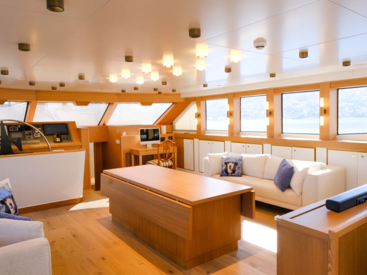 The custom-built motor sailer offers a choice of al fresco seating on deck and benefits from the additional of a flybridge.