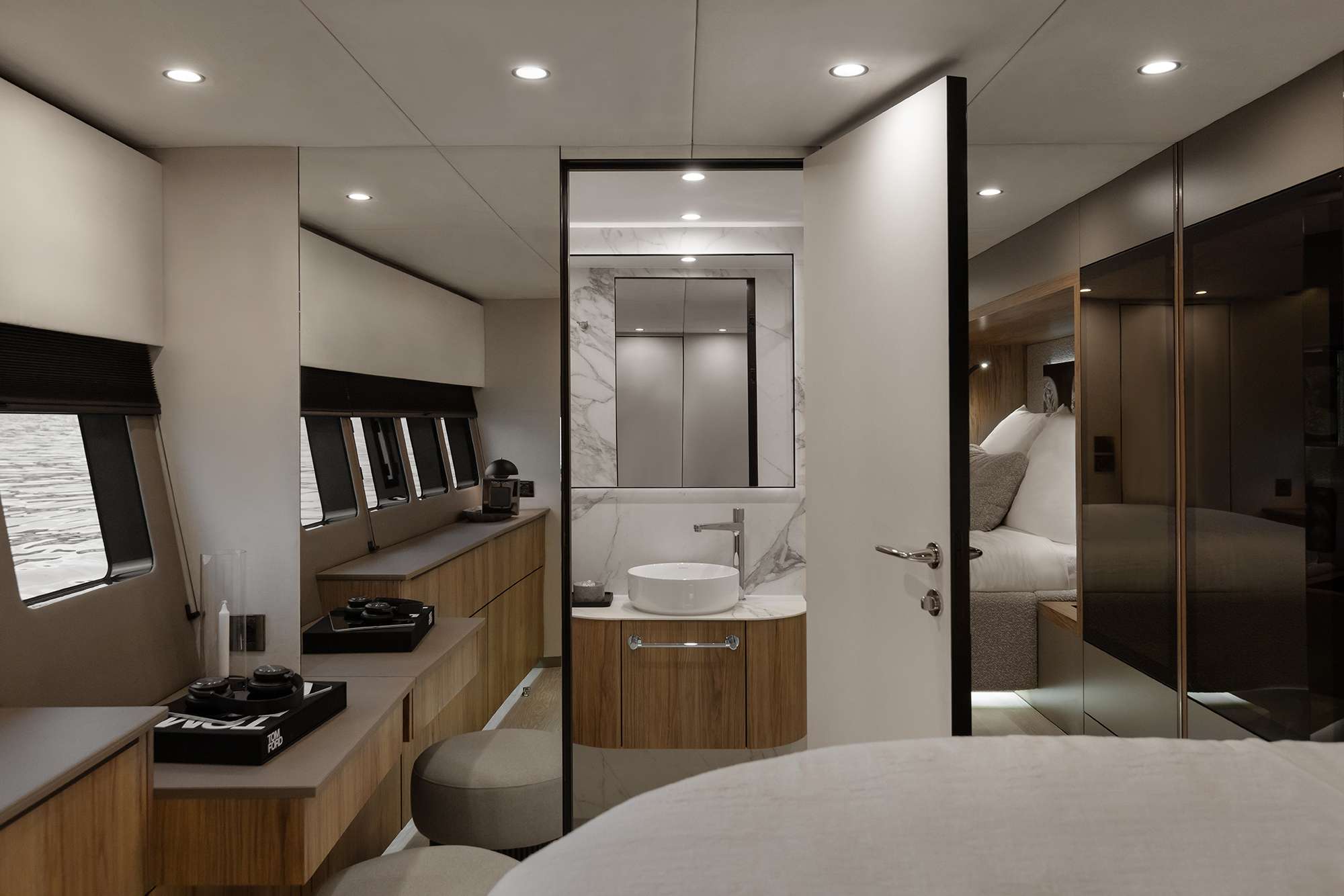 Four of the five suites offer queen size, walk around beds and ensuite bathrooms, while the fifth suite is a double with corner bed and ensuite bathroom. All the suites share the stylish décor seen on the main deck and are warm, welcoming and provide the perfect private havens for everyone on board.