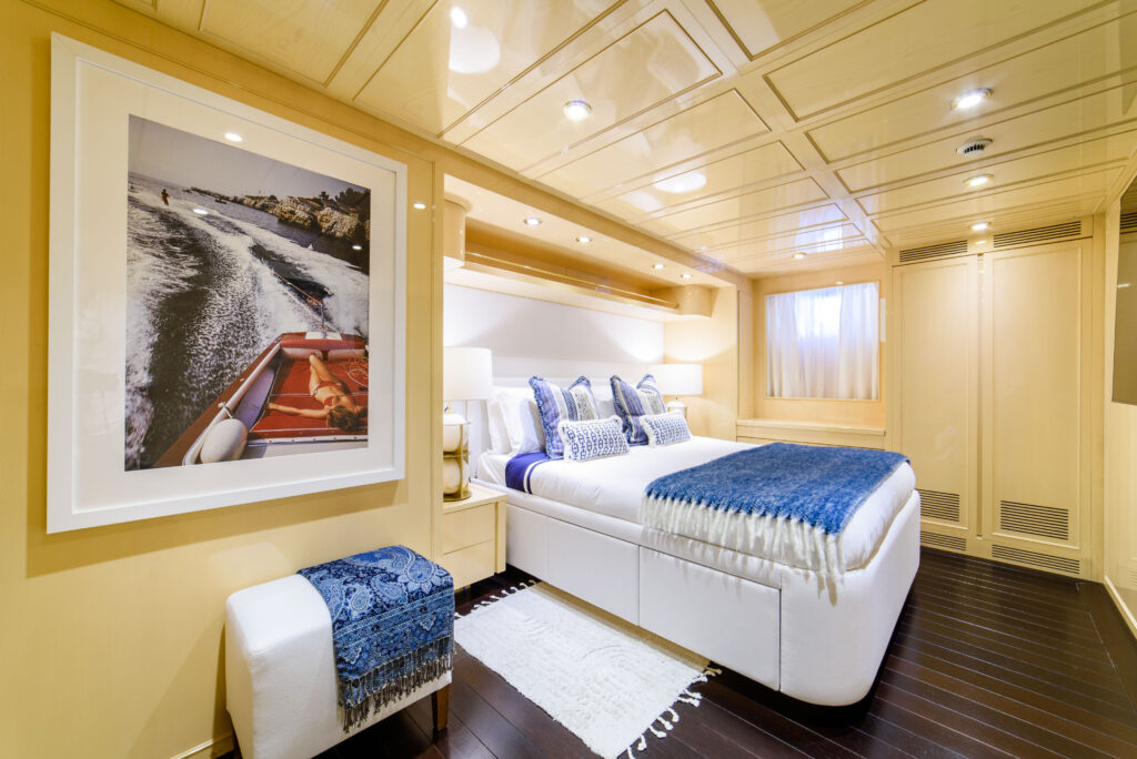 Up to ten guests can be accommodated in five suites with additional cabins for the seven crew members.