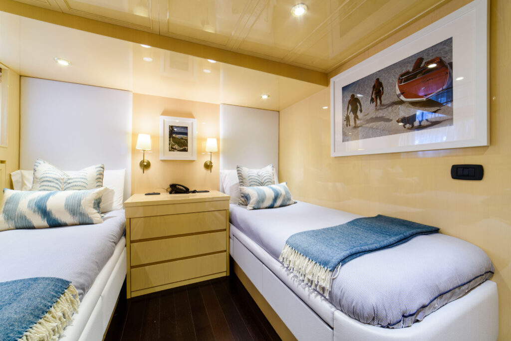 Up to ten guests can be accommodated in five suites with additional cabins for the seven crew members.