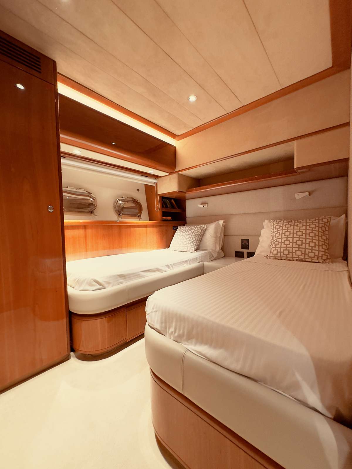 Up to eight guests can be accommodated in four luxury suites with additional cabins for the four crew members.
