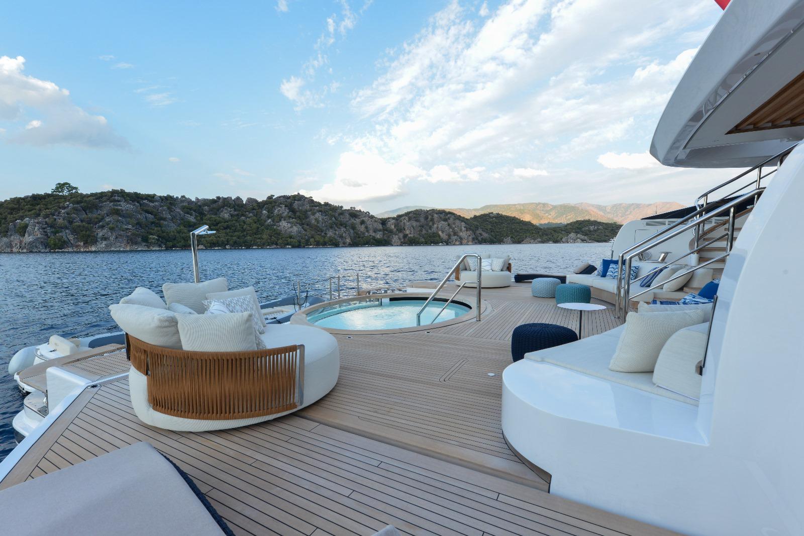 Legasea) is a 49.91 m (163' 9") Benetti B.Now 50 Oasis Deck launched in 2023 and characterised by her expansive 116sqm beach terrace with integrated pool and fold out wings. She offers an open plan layout filled with natural light which blurs the boundaries between the exterior and interior.
