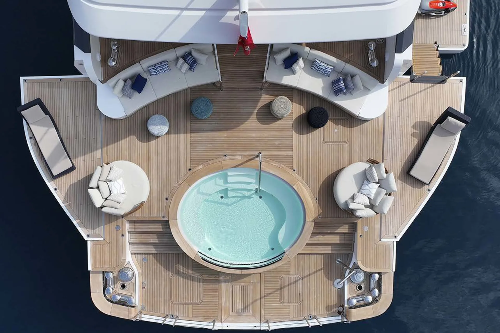 Legasea) is a 49.91 m (163' 9") Benetti B.Now 50 Oasis Deck launched in 2023 and characterised by her expansive 116sqm beach terrace with integrated pool and fold out wings. She offers an open plan layout filled with natural light which blurs the boundaries between the exterior and interior.