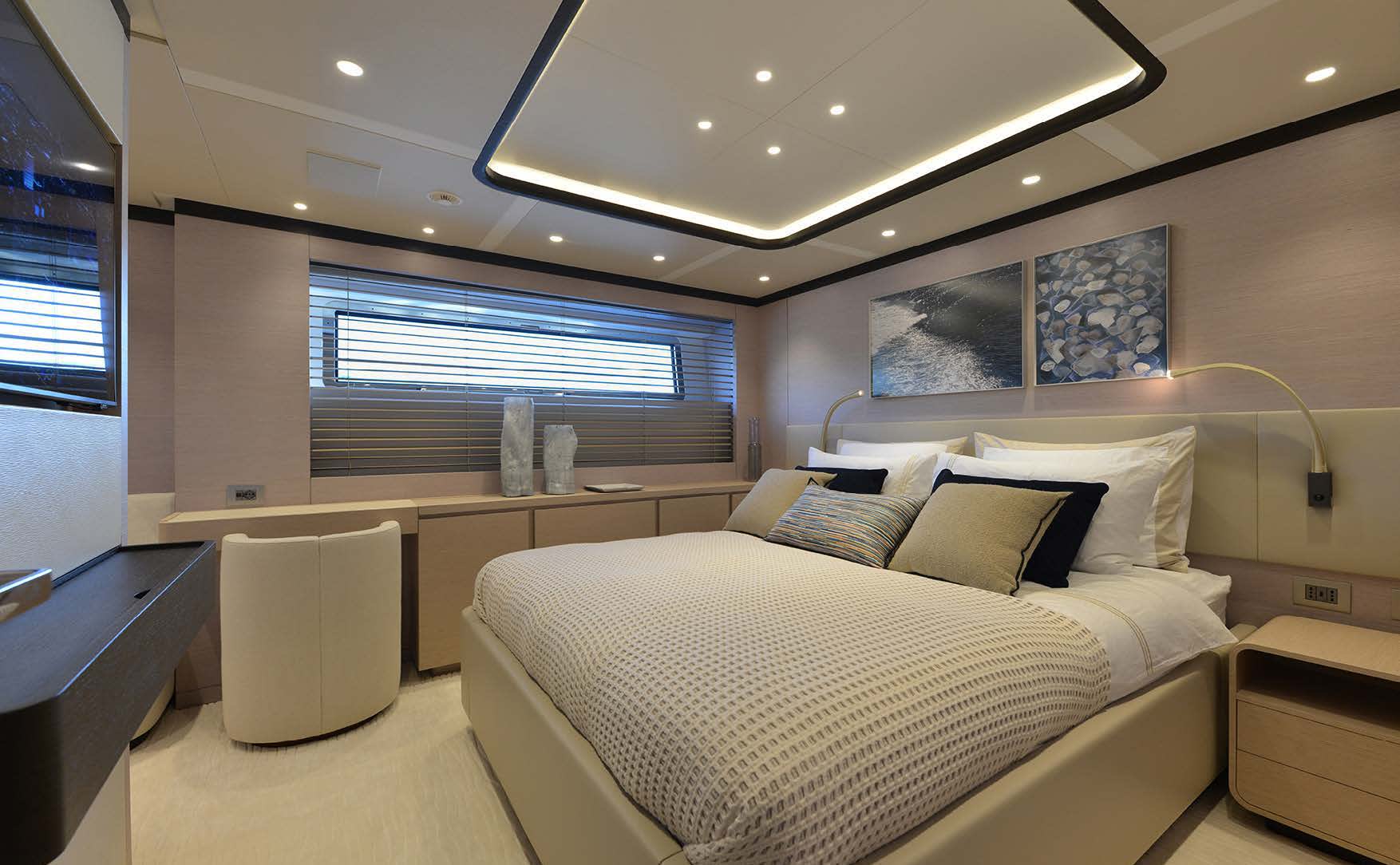 Accommodation is for up to twelve guests in six suites with additional cabins for the ten crew members.