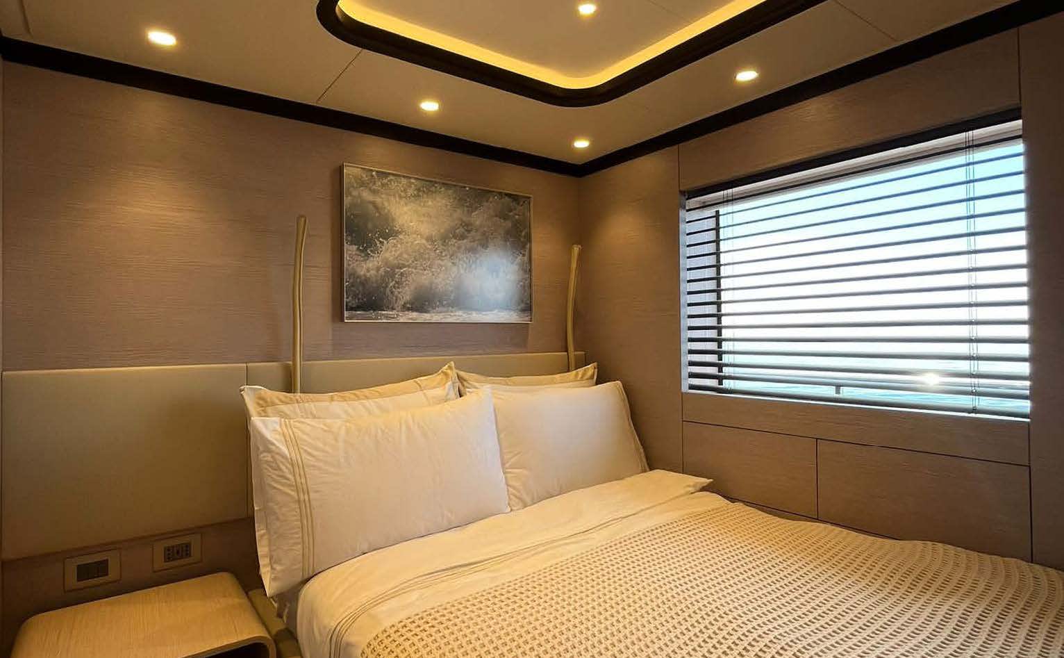 Accommodation is for up to twelve guests in six suites with additional cabins for the ten crew members.