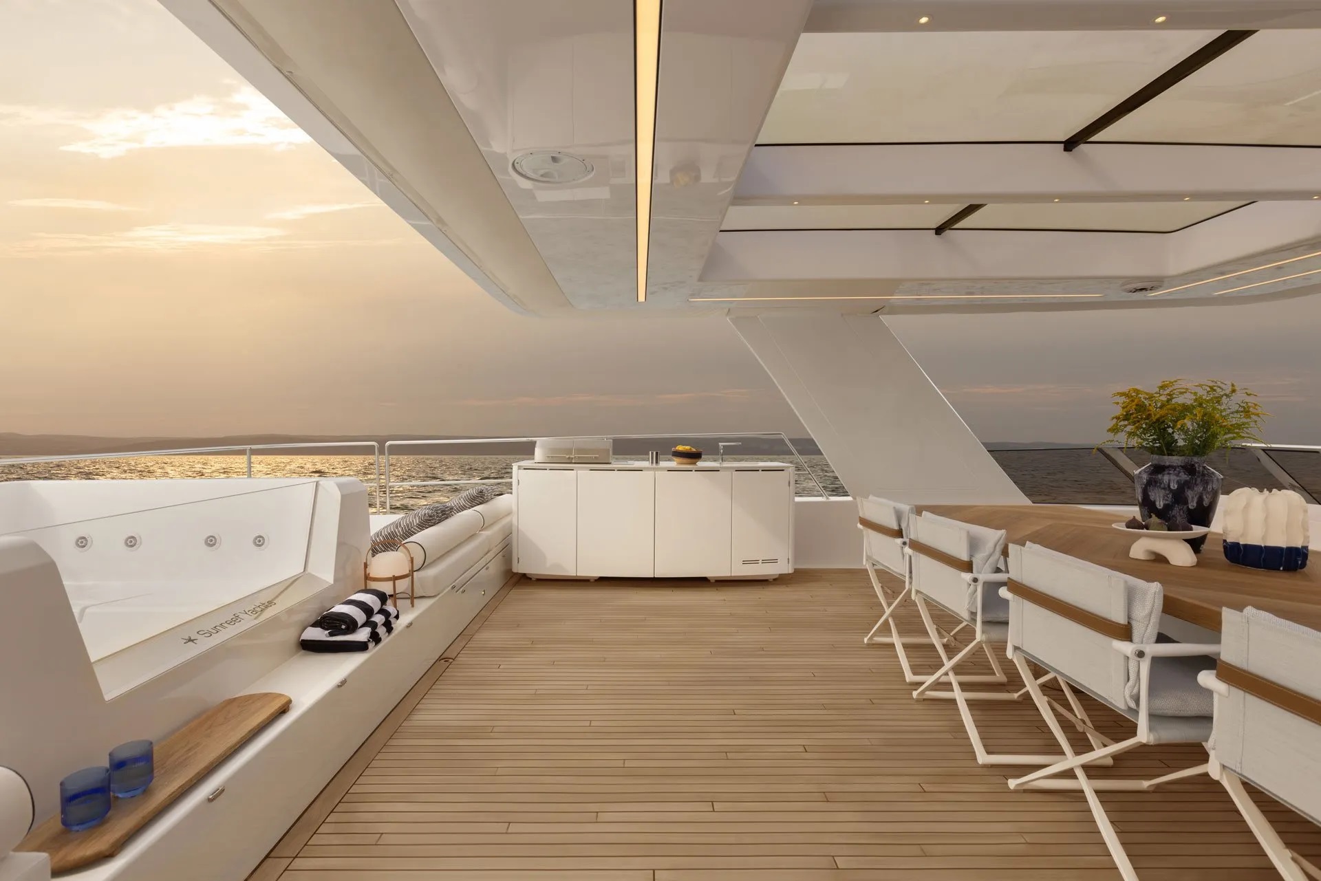 A wide beam and flybridge layout ensure there is plenty of deck space for guests to savour the al fresco lifestyle.