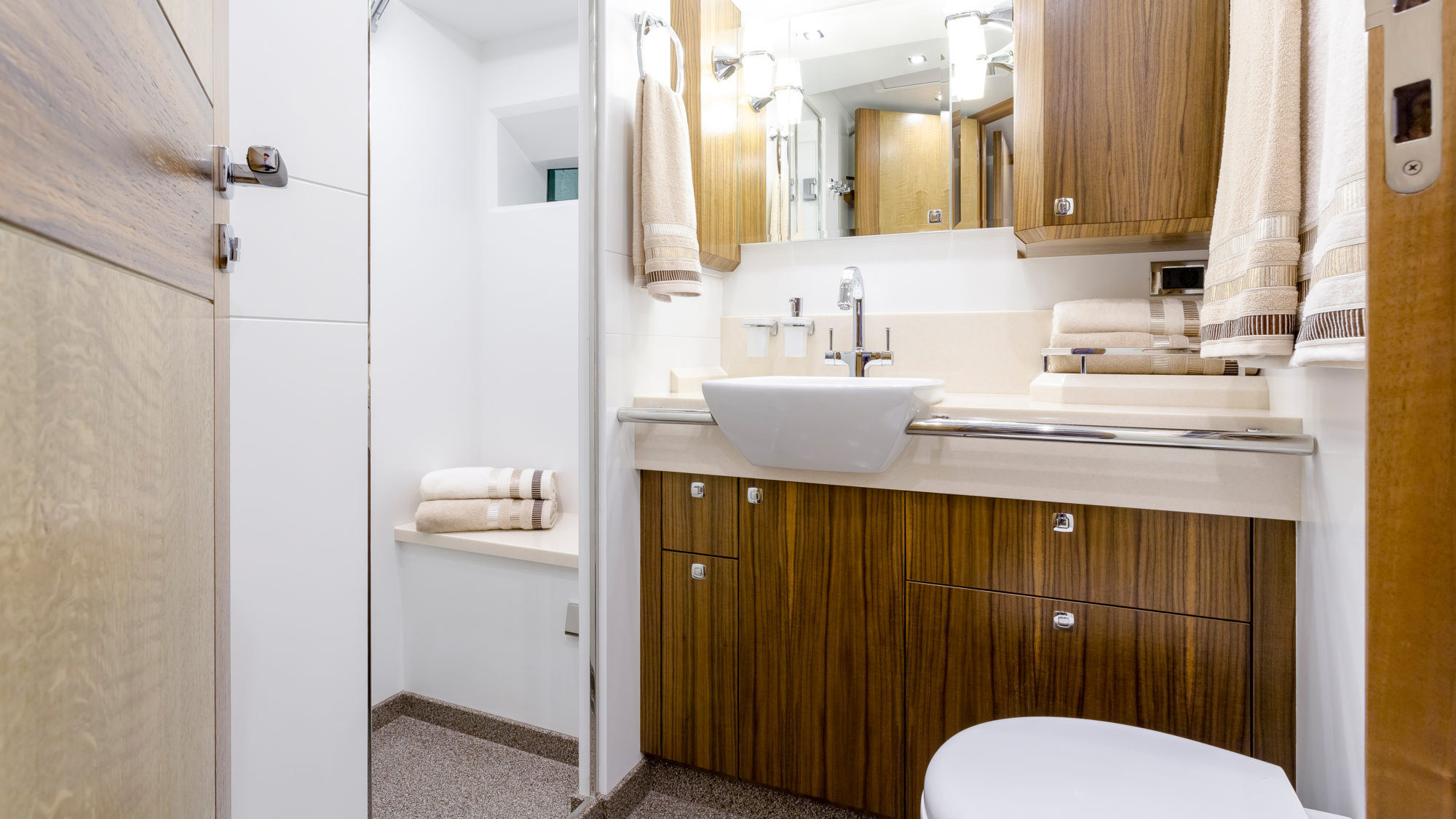 She offers generous and sociable deck spaces, stylish interiors plus flexible accommodation for up to six guests in three luxury ensuite cabins. The experienced captain and crew are on board to help create a premium charter experience.