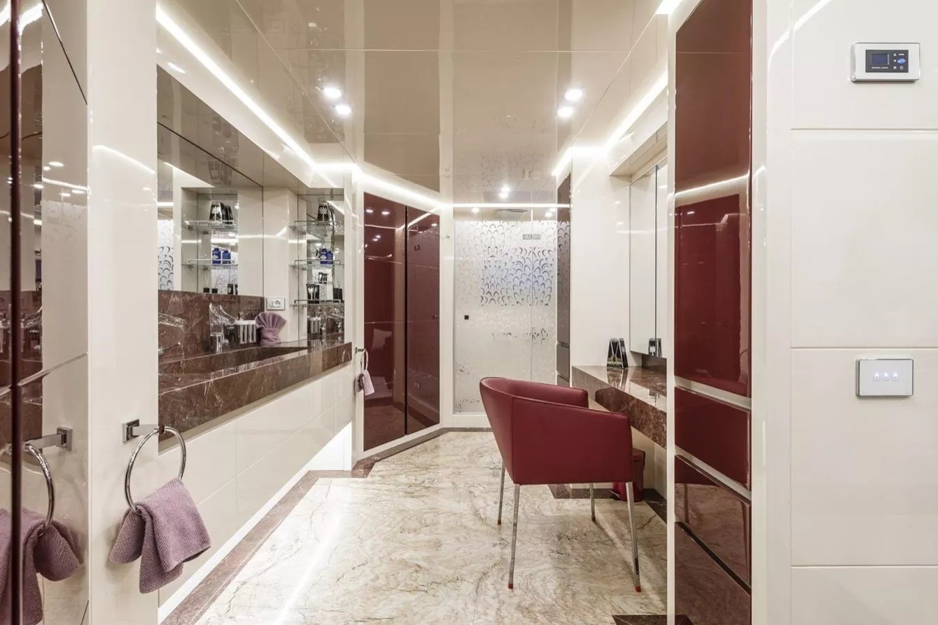 The master suite is forward on the main deck and boasts a king-sized bed, seating area, fold-out balcony and deluxe ensuite bathroom. The four additional suites are on the lower deck and also benefit from the luxury and privacy of ensuite bathroom facilities.